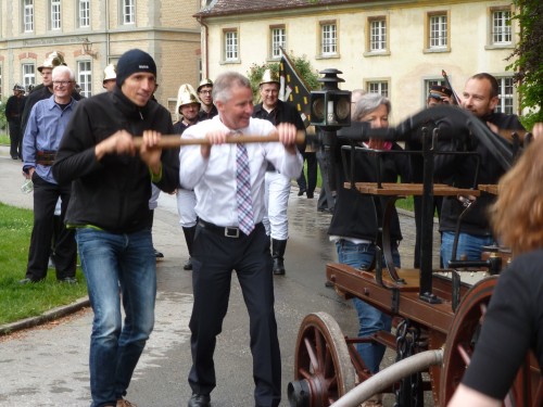 Im Rahmen des Feuerwehrjubiläums “150 Jahre Abteilungen Mimmenhausen und Salem” fand am Samstag, 16. Mai 2015 im Schlossbereich in Salem der 25. Handdruckspritzenwettbewerb des Landesfeuerwehrverbandes Baden-Württemberg statt. Die Feuerwehr Salem wurde hierbei von einer Mannschaft aus den Reihen der Alterskameraden vertreten.