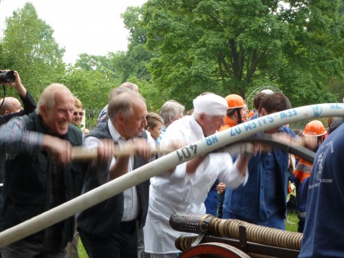 Beim Handdruckspritzenwettbewerb war zwar nur eine Pumpzeit von 4 Minuten gefordert, die aber,