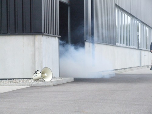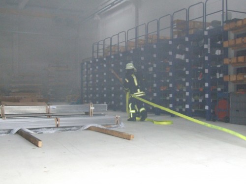 Auf einmal ertönte der Alarm der automatischen Brandmeldeanlage der Firma Seeger und man konnte im hinteren Bereich des Firmengebäudes eine Rauchentwicklung feststellen.
