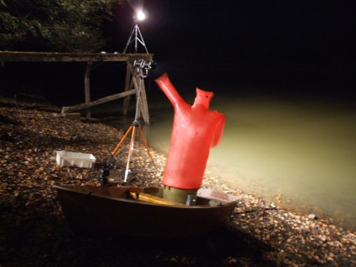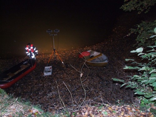 Beim Eintreffen der ersten Kräfte wurde in der Mitte des Weihers ein Ruderboot gesichtet. Nachdem die Besatzung des RW`s mit Hilfe des Schlauchbootes das Ruderboot erreichte, wurde festgestellt, dass es sich um eine aufblasbare Puppe handelte, die eingesetzt wurde, um die Fischreiher von dem Weiher fernzuhalten. Das Ruderboot mit der Puppe wurde an Land gezogen und gesichert | ||