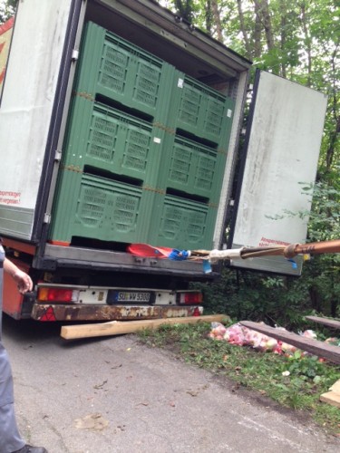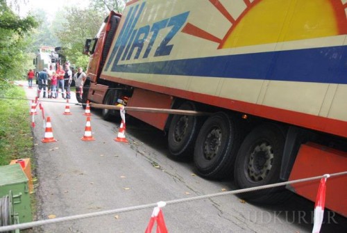 Nach vorliegenden Informationen, hatte der LKW Fahrer dem Navigationssystem zu sehr vertraut. Nach zuvoriger Erkundung durch den Einsatzleiter wurde für den Einsatz H1 - Technische Hilfeleistung alarmiert sowie der Fachberater THW. Nach telefonischer Rücksprache mit diesem, erfolgte eine weitere Alarmierung für eine Gruppe vom THW mit der Anforderung mehrerer Greifzüge. Der LKW wurde von den Einsatzkräften der Feuerwehr Salem zunächst hangabseitig mit Holz unterbaut um den Trailer zu sichern und Hangaufwärts mit einem Greifzug um die Lage stabil zu halten. Nach Ankunft des THW wurden zwei weitere Greifzüge zur Sicherung in den Einsatz genommen. Parallel zu den Sicherungsarbeiten wurden ein Teleskopstapler und ein Gabelstapler eines ansässigen Unternehmens, sowie ein Ersatzfahrzeug zur Aufnahme der Ladung organisiert. Nachdem die Sicherungsarbeiten abgeschlossen waren, konnte mit der Entladung der Obst-Großkisten (je 270 - 300kg) und insgesamt 78 Stück begonnen werden. Nach der Löschung der Fracht konnte die LKW Zugmaschine inkl. Trailer ohne weitere Beschädigungen wieder komplett auf die Strasse gezogen werden. Weitere Bilder folgen. Zur Info: Südkurier: http://www.suedkurier.de/region/bodenseekreis-oberschwaben/salem/Apfellaster-kommt-beim-Tobelhof-von-der-Strasse-ab;art372491,7227832 http://www.suedkurier.de/region/bodenseekreis-oberschwaben/salem/Apfellaster-kommt-beim-Tobelhof-von-der-Strasse-ab;art372491,7227832,D::Apfellaster-faehrt-sich-fest;cme1332080,9028260? utm_source=Apfellaster+f%E4hrt+sich+fest&utm_medium=Apfellaster+kommt+beim+Tobelhof+von+der+Stra% DFe+ab&utm_campaign=Bildergalerie | ||