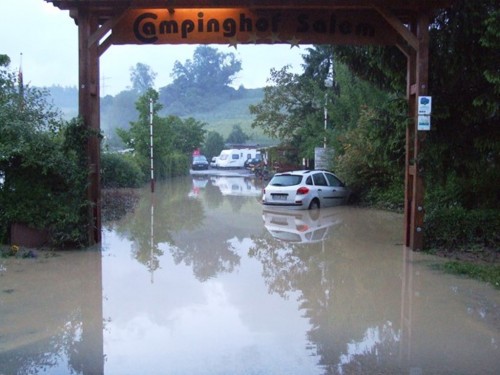 der mit seinen Wassermassen schon früh die Fläche des Campingplatzes flutete.