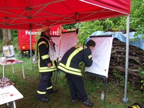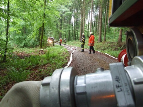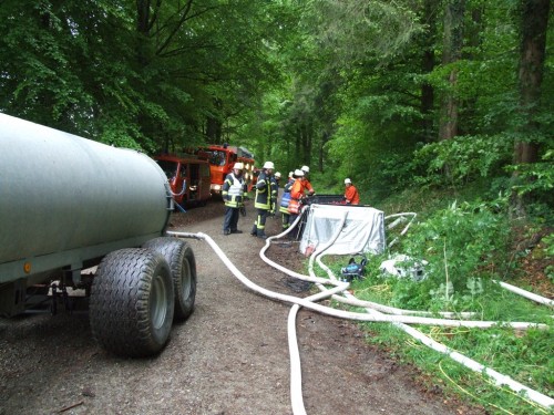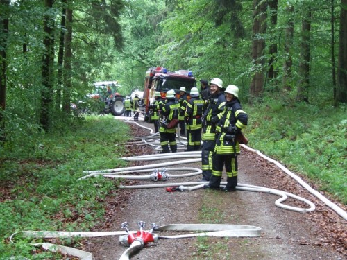Im Markgräflichen Walde wurde mit 6 Löschfahrzeugen der angenommenen Wadbrand bekämpft. Die offene Wasserversorgung, die teilweise mit Güllefässern durchgeführt wurde, ergab wichtige Erkenntnisse, sowie die Einrichtung eines Bereitstellungsrauems und die Orientierung im Waldgebiet.