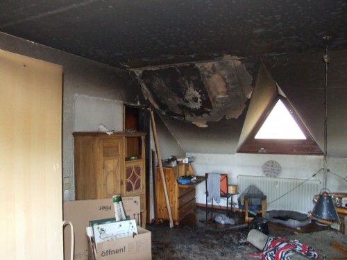 Sonntagnachmittag die Einsatzkräfte der Freiwilligen Feuerwehr Salem gerufen.Noch auf der Anfahrt zum Gerätehaus konnten Flammen und Rauchschwaden aus einer Dachgaube schon von Weitem festgestellt werden und wiesen auf den Einsatzort hin. Um genügend Einsatzkräfte an der Einsatzstelle zu gewährleisten, vor allem Atemschutzgeräteträger, wurde das Alarmstichwort von F2 auf F3 erhöht. Bei Ankunft des Einsatzleiters verließen schon die ersten Bewohner ihre Wohnungen nach außen, das Treppenhaus als Fluchtweg war noch nicht vom Brandrauch betroffen. Weitere Personen wurden aufgefordert das Haus sofort zu verlassen. Während ein Einsatztrupp das Treppenhaus mittels eines Drucklüfters unter Überdruck setzte, wurde im Außenbereich die Drehleiter (zur Zeit von der Stadt Markdorf an die Gemeinde Salem ausgeliehen wegen lang andauernder Reparatur- und Wartungsarbeiten der Salemer Drehleiter) in Stellung gebracht. Dank der frühen Überdruckbelüftung konnte eine Ausbreitung des Brandrauchs auf das Treppenhaus und andere Wohnungen komplett verhindert werden. Parallel nahm ein Trupp im Außenangriff ein B-Rohr vor, mit dem die Flammen an der Dachgaube von außen bekämpft wurden. Ein Zwangszugang zur Brandwohnung musste danach erfolgen um abschließende Löschmaßnahmen behutsam vorzunehmen und den Brandraum auf weitere Brandnester zu untersuchen. Dies geschah vor allem mittels der Wärmebildkamera, welche heiße Stellen detektieren kann. Die Wohnung wurde während der Einsatzmaßnahmen ständig belüftet, um den Brandrauch aus der Wohnung zu bekommen. Trotz dem beherzten Eingreifen der Einsatzkräfte, konnte ein Hund nicht mehr gerettet werden. Die Wohnung ist vom Brand und Brandrauch komplett geschädigt. Auf Grund dem umsichtigen Vorgehens der Freiwilligen Feuerwehr Salem, entstand kein weiterer Schaden an anderen Wohneinheiten des Gebäudes. Zur Absicherung einer ev. eskalierenden Situation, wurde die Drehleiter der FF Uhldingen-Mühlhofen in der Bereitschaftsraum gerufen. Des Weiteren waren der Gerätewagen Atemschutz Bodenseekreis, stationiert bei der FF Markdorf für Materialunterstützung, und das DRK Salmertal mit seiner Schnelleinsatzgruppe zur Betreuung der Atemschutzgeräteträger und ev. betroffener Personen vor Ort, sowie ein Rettungswagen und der Notarzt des Regelrettungsdienstes als auch die Landespolizei Baden-Württemberg. Eine Feuerwehreinsatzkraft der Freiwilligen Feuerwehr Salem musste nachdem ein umstürzender Schrank ihm die Atemschutzmaske etwas vom Gesicht schob und er giftige Rauchgase einatmete nach Erstuntersuchung beim DRK Salemertal vom Rettungswagen ins Krankenhaus zur weiteren Untersuchung gebracht werden. Er konnte es noch am gleichen Abend wieder verlassen. Die Polizei hat noch während der Löschmaßnahmen Ermittlungen zur Brandursache aufgenommen. Zur Höhe des entstandenen Sachschadens kann zum jetzigen Zeitpunkt keine Aussage gemacht werden. Schwäbische Zeitung: http://www.schwaebische.de/region_artikel,-Dachgeschosswohnung-in-Salem-brennt- _arid,10080025_toid,484.html | ||