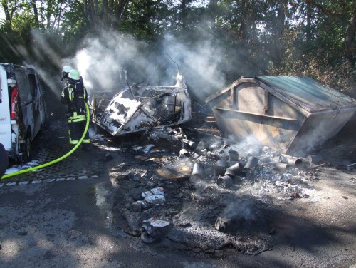 Glücklicherweise konnte kurz nach dem Eintreffen der ersten Kräfte Entwarnung gegeben werden. Es brannte ein Wohnwagen im Außenbereich in voller Ausdehnung, wobei das Feuer bereits auf einen direkt daneben stehenden Transporter übergegriffen hatte. Sofort wurde vom Angriffstrupp des LF16 mit dem Schnellangriff die Brandbekämpfung eingeleitet, während der 2te Trupp sich mit Atemschutz ausrüstetet und ebenfalls mit einem C-Rohr die Brandbekämpfung unterstützte. Bereits nach kurzer Zeit war der Brand soweit unter Kontrolle, dass ein großer Teil der alarmierten Kräfte aus dem Einsatzgeschehen herausgelöst werden konnten und die Einsatzstelle verlassen konnten. Nachdem die Nachlöscharbeiten abgeschlossen waren, konnten auch die letzten Kräfte nach etwas mehr als einer Stunde die Einsatzstelle verlassen und ins Gerätehaus einrücken. Weitere Kräfte vor Ort: Landespolizei BW, Rettungsdienst | ||